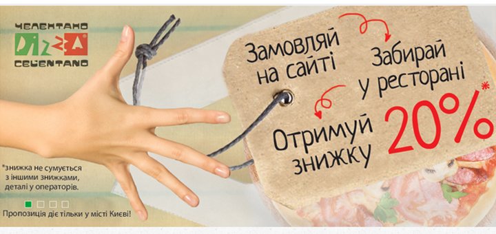 The network of pizzerias "Celentano" has prepared a pleasant surprise for its guests - a 20% discount. All you need for this is to place an order on the website, pick it up from the restaurant yourself and the discount is yours!