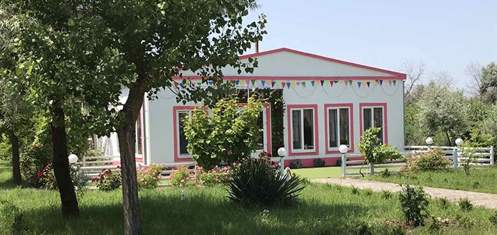 Комфортные коттеджи базы отдыха находятся на второй береговой линии. До пляжа - 600 метров. Домики усадебного типа и ухоженная просторная территория придется по душе каждому, кто устал от шумного суетливого города. Для отдыхающих на территории базы есть кафе, существует возможность одно-, двух- или трехразового питания.