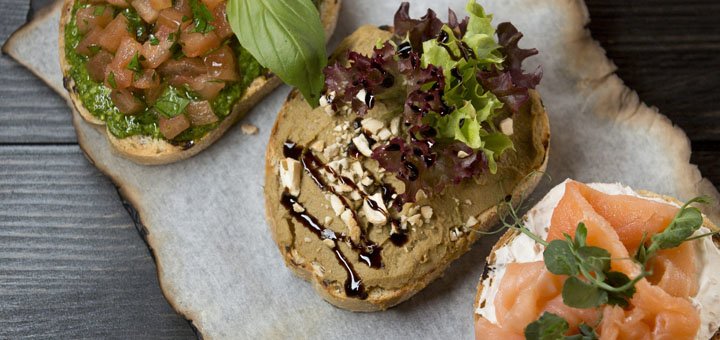 Якщо ви хочете просто перекусити, то в закладі вам запропонують асорті Брускетта: з сиром «Філадельфія» і слабосоленим лососем, з курячим паштетом і горіхами кешью, соусом «Песто» з томатами і зеленню. І до слова про паштет - курячий з соусом з лісових ягід - це сама досконалість.