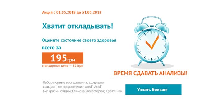 Акційна ціна комплексної діагностики складає - 195 гривень замість 325!