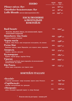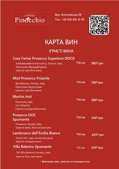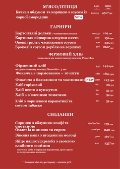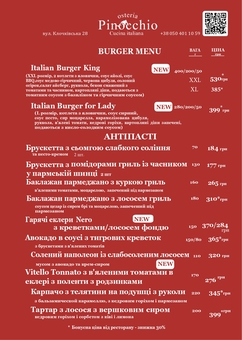 Демократичне італійське та європейське меню, цікаві пропозиції та ексклюзиви від шеф кухаря. «Osteria Pinoccio» – ідеальне місце для вашого свята та гарного відпочинку.