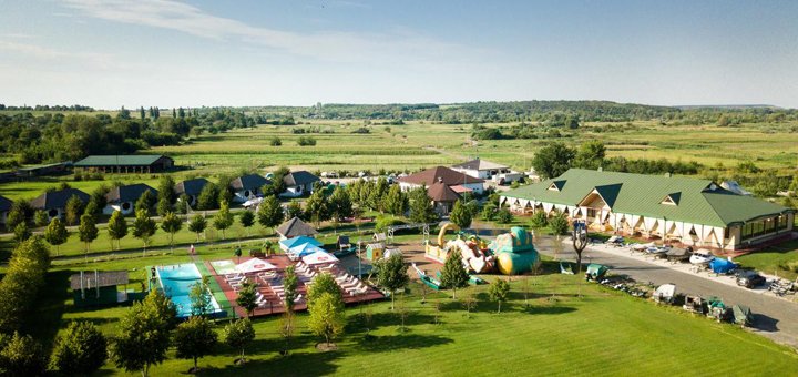 - Дитячий майданчик (пісочниці, гірки, гойдалки), надувний дитяче містечко і два малих плавальних басейни